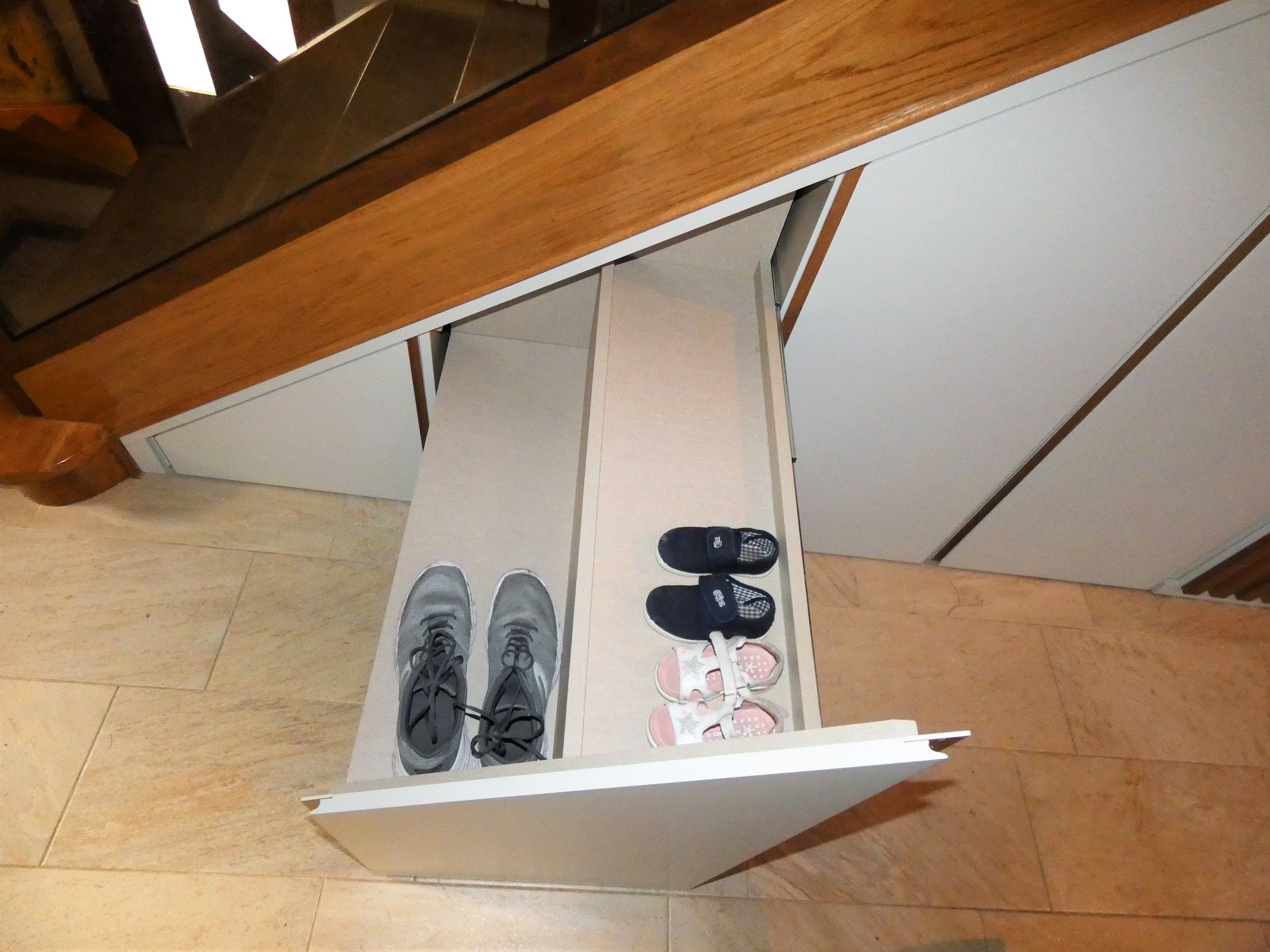 Quisimos aprovechar todo el bajo escalera, que está en la entrada de la casa, dándole un toque especial con los alistonados.